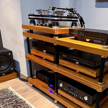 Sistema para el control de vibraciones con racks de pumaquiro, acero y bronce. Ideal para audiófilos y equipos de alta gama.